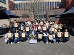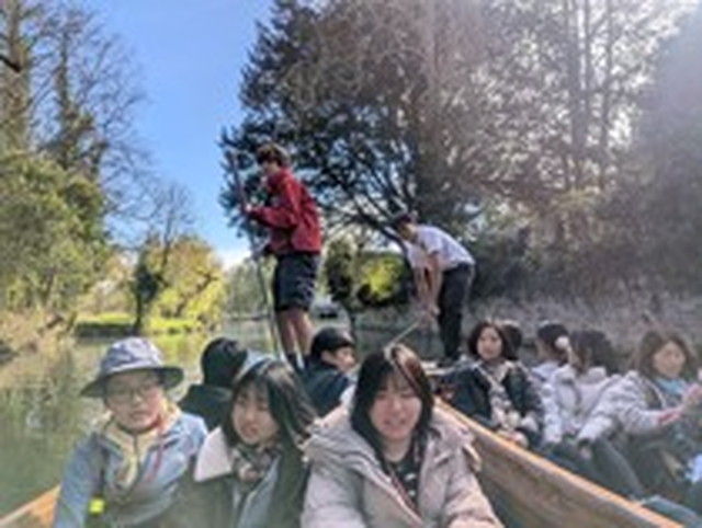 いよいよケンブリッジ滞在の最終日を迎えました。今朝は温かく迎えてくれたホストファミリーとの別れを惜しみながら集合し、午前中は今週の学びを振り返る最後の英語レッスンに臨みました。レッスンの締めくくりには、この1週間、学習から観光まで片時も離れずサポートしてくださったシャキール先生から、生徒一人ひとりに修了証が手渡されました。その後、生徒たちから先生へサプライズでメッセージカードと花束を贈呈。代表生徒が堂々と、感謝の気持ちを立派な英語で述べる姿から、この短期間での確かな成長を感じることができました。午後はケム川でのパンティング(川下り)を体験。水上から眺める歴史的なカレッジの風景を最後にしっかりと目に焼き付け、思い出深いケンブリッジの街を後にしました。今夜はオックスフォードコースの仲間とも合流し、空港近くのホテルに宿泊しています。夕食にはイギリス名物のフィッシュ・アンド・チップスを全員で堪能しました。明日の早朝にはいよいよ帰国の途に就きます。