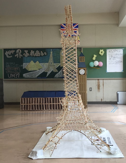 各クラスの展示では、富嶽三十六景の撮影スポットや、600本の爪楊枝で作ったエッフェル塔など、驚きのアイデアが満載!体験型ゲームや食品販売もあり、どのコーナーも大賑わいでした。😊