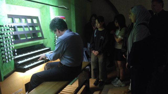 その後、学校の名前の由来ともなっている聖カタリーネン教会をご案内いただくとともに、パイプオルガンの演奏を鑑賞しました。